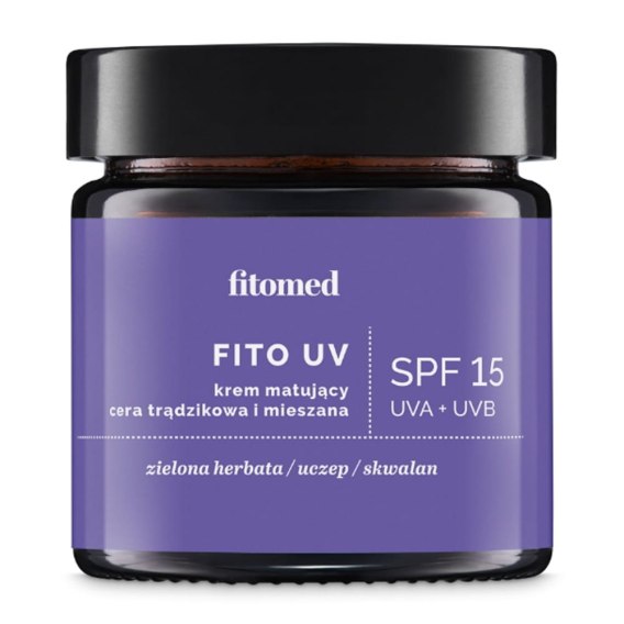 Krem matujący do cery trądzikowej i mieszanej z UV chroni przed działaniem promieni słonecznych. Zawiera cenne antyoksydanty pochodzące z korzenia tarczycy bajkalskiej, kocanki włoskiej i zielonej herbaty, a także ochronne substancje lipidowe obecne w oleju malinowym, migdałowym, skwalanie i maśle shea. Filtr SPF zapewnia ochronę na poziomie 15. Dzięki obecności naturalnych substancji o udokumentowanym działaniu anty-UV oraz potencjale antyoksydacyjnym, krem pielęgnuje i zapobiega fotostarzeniu się skóry.